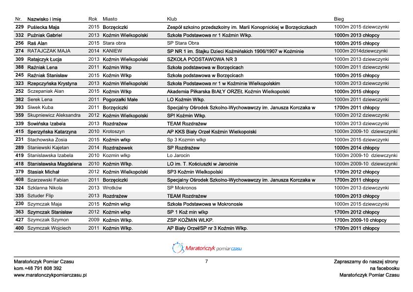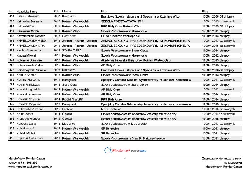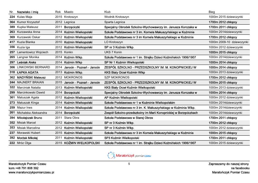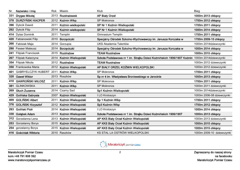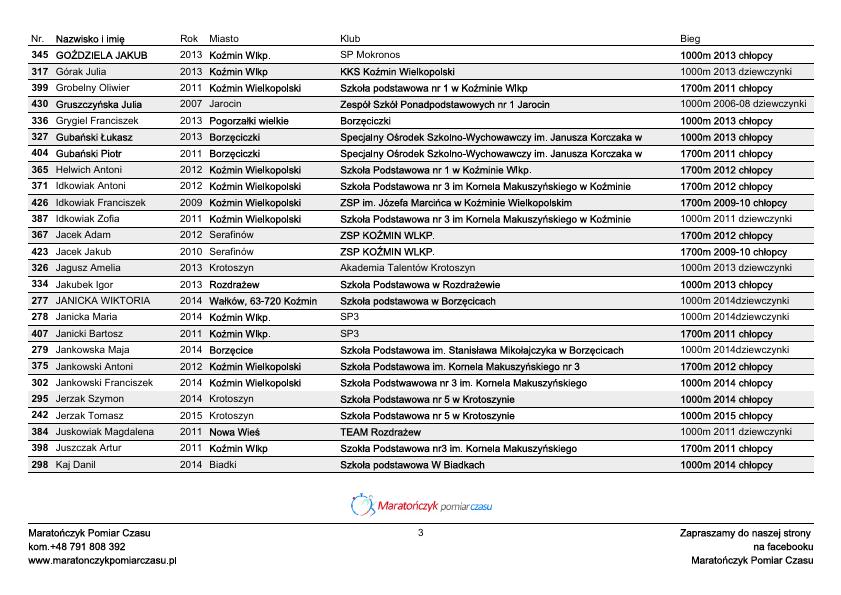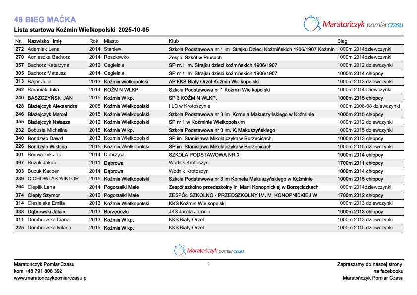 48 BIEG MAĆKA – LISTA STARTOWA – BIEGI MŁODZIEŻOWE